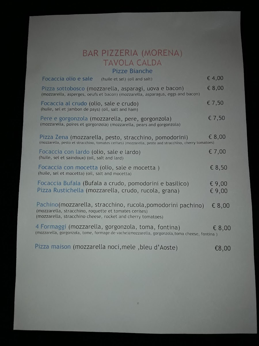 Welcome to Bar Morena - Pizzeria, a hidden gem nestled in Gressan, Italy. This charming pizzeria is not just a place to eat; it’s an experience enhanced by warm hospitality and a welcoming atmosphere. Known for its incredible value, the menu features fresh, flavorful pizzas starting at just €7, accompanied by affordable drinks like €4 Aperol and €2 wine.